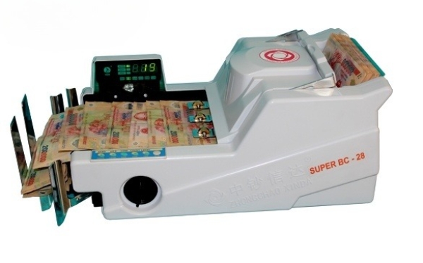 Máy đếm tiền Xinda Super BC 28F có thể đếm các loại tiền polymer và cotton , máy băng tải dài.